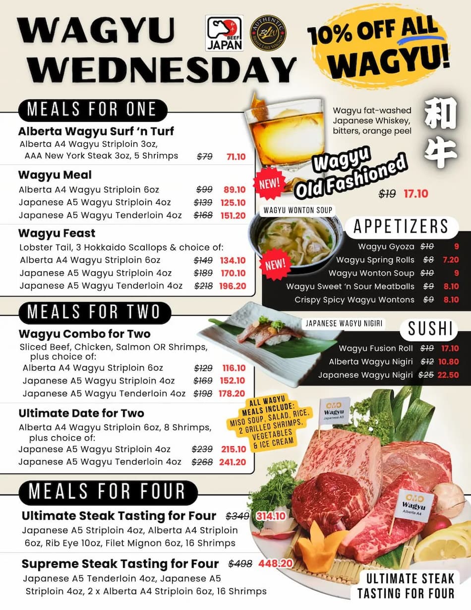 Japanese Steakhouse serving Premium Alberta Beef and Authentic Japanese Wagyu, grilled to perfection by entertaining chefs right before your eyes.